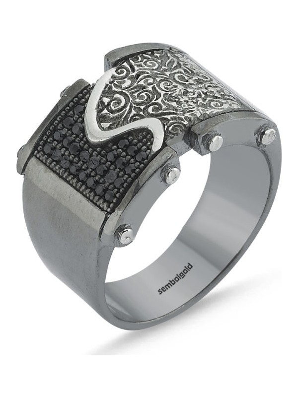 Erkek Gumus Yuzuk Motif Ozel Tasarim Sembolgold