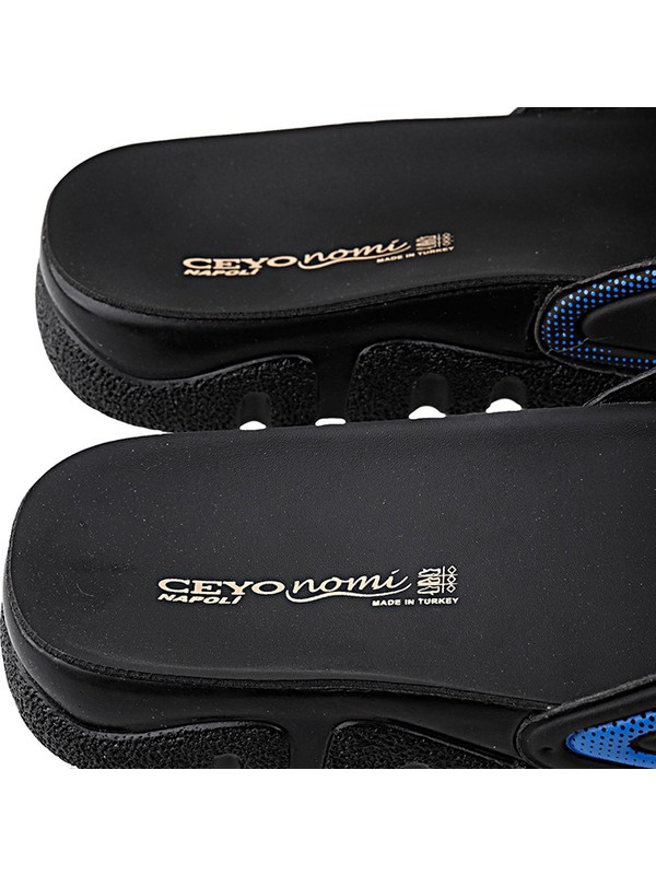 Ceyo Napoli 2 Siyah Mavi Erkek Terlik Etichet