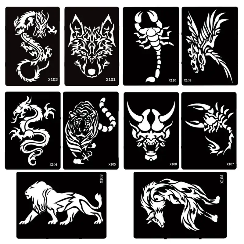 Satin Al Yigin Sablonlar Glitter Dovme Stencil Cizim Sablonlari Icin Erkekler Kurt Ejder Kaplan Kafatasi Hayvan Airbrush Kina Dovme Stenc Soguk Tl56 79 Dhgate Comda