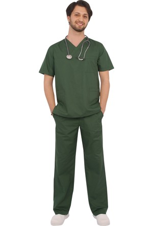 Emel Tekstil Doktor Erkek Haki Forma Cerrahi Yaka Takim Uniforma Trendyol