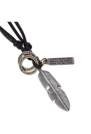 Bu Farkli Metal Siyah Deri Ipli Kolye Bf13814