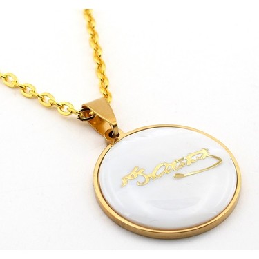 Solfera Kemal Ataturk Imza Yuvarlak Sari Celik Erkek Kolye Fiyati