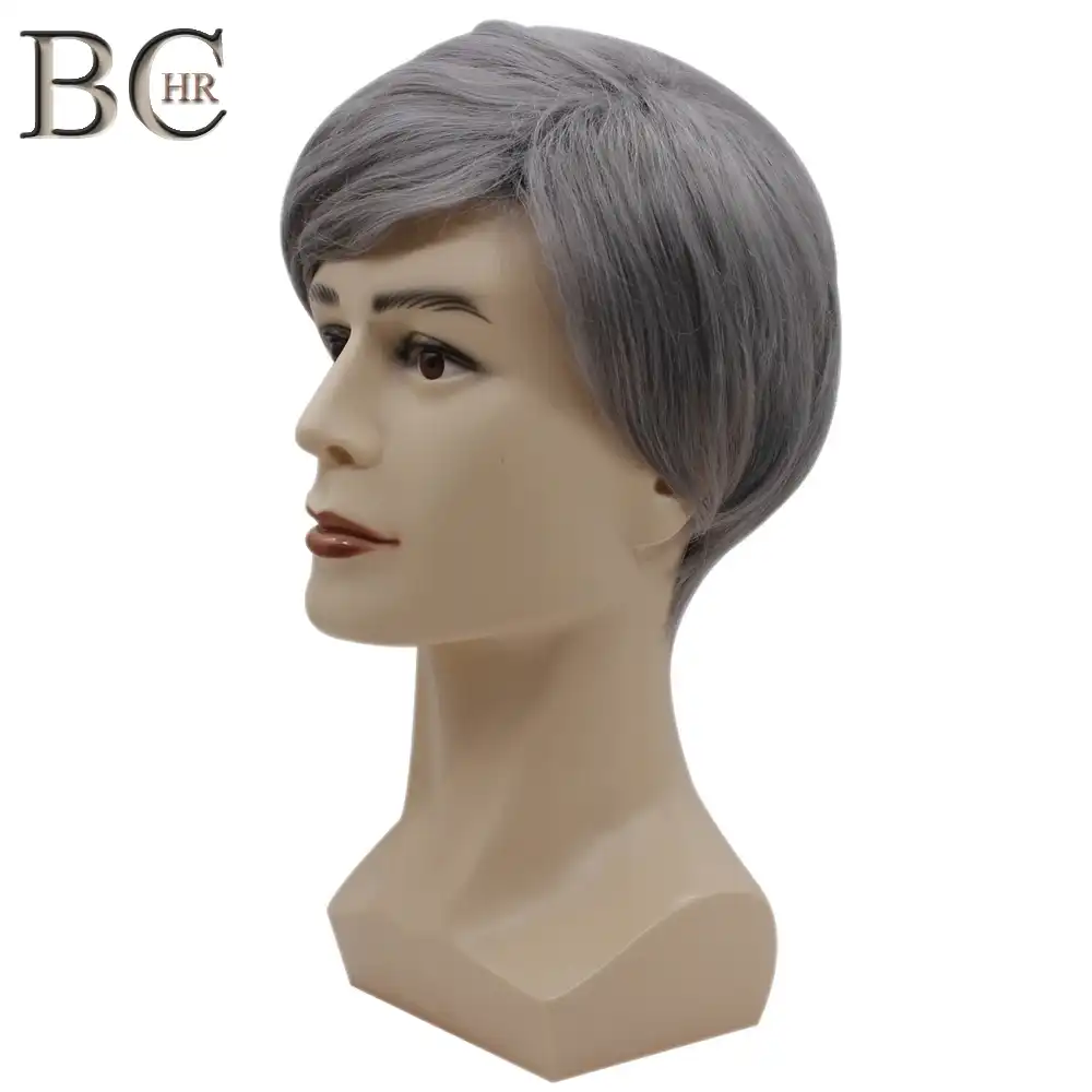 Bchr Kisa Erkekler Peruk Duz Sentetik Peruk Erkekler Icin Erkek Sac Fleeciness Gercekci Gumus Dogal Peruk Peruk Wigs For Men Wig Fullwig Wig Aliexpress