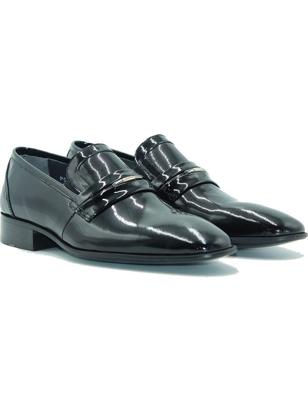 Siyah Rugan Duz Deri Kosele Erkek Ayakkabi