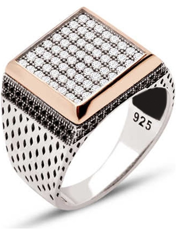 Gumus Siyah Zirkon Tasli Kare Model Erkek Yuzuk Silverplus