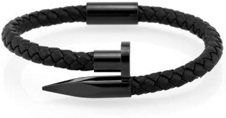 Sdfasv Bracelet Men Genuine Leather Stainless Steel Men Bracelet Charm Gold Nail Handmade Men Jewelry Erkek Bileklik Xs 165mm Black Leather Black Amazon Co Uk Jewellery