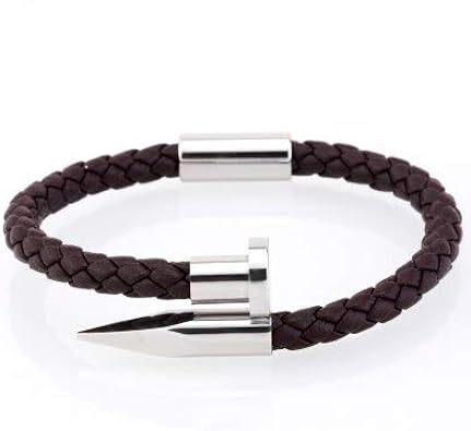 Sdfasv Bracelet Men Genuine Leather Stainless Steel Men Bracelet Charm Gold Nail Handmade Men Jewelry Erkek Bileklik Xl 215mm Brown Leather White Amazon Co Uk Jewellery
