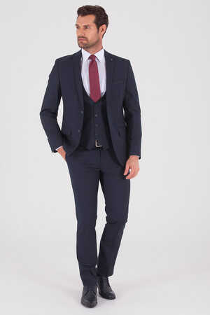 Lacivert Kareli Slim Fit Yelekli Takim Elbise Hatemoglu