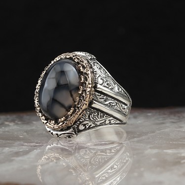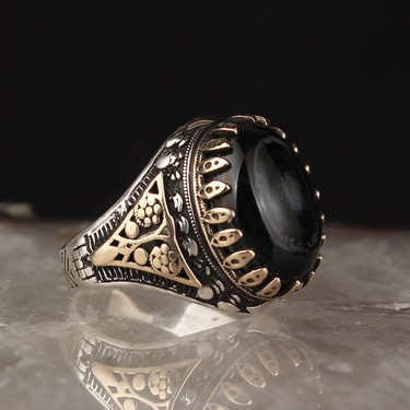 Oniks Tasli Desenli 925 Ayar Gumus Erkek Yuzuk Tasli Yuzukler Tesbihevim
