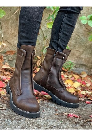 Hrly Erkek Postal Deri Uzun Bot Kahve